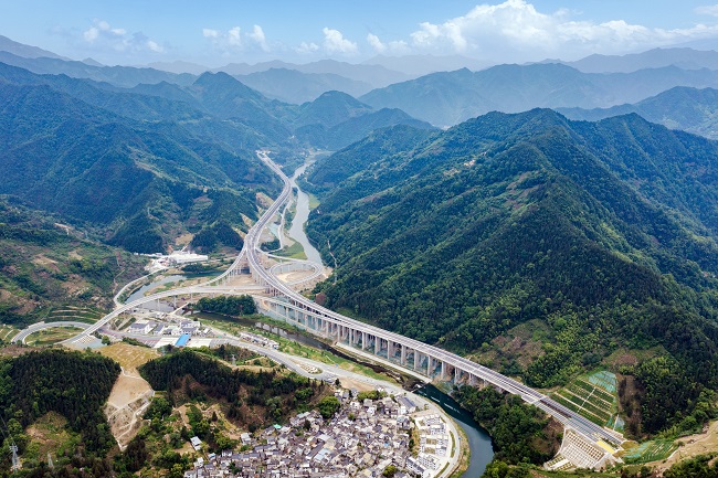 由安徽建工建设投资集团有限公司承建的黄千高速02标段,于2020年8月25日开工,桥隧比高达94%,是目前省内高速公路项目中桥隧比最高、施工难度最大的项目。其中,宽翼展花瓶墩工艺为省内高速公路桥梁建设首次应用;傍山狭窄走廊带,采用装配式悬挑路基结构更为全国首创;方村隧道千岛湖端双线穿越大型岩堆体不良地质,施工难度国内罕见。