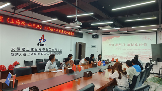 锦绣大道(上海路-山东路)工程项目部组织开展了“身正邀明月,廉洁庆佳节”中秋廉政教育活动。