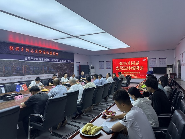 9月10日,建工建投集团四分公司在五蒙高速05标项目为张兴才同志举办退休职工座谈会。公司党委副书记、工会主席干戈、四分公司领导班子及项目代表参加本次座谈会。