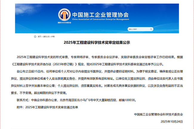 近日,中国施工企业管理协会正式发布《2025年工程建设科学技术奖审定结果公示》,建工建投集团两项创新成果荣登榜单。其中,《城市核心区复杂坑隧变形感知及原位保护关键技术》荣获二等奖,《生态敏感区大跨度桥梁绿色建造关键技术及应用》荣获三等奖。此次获奖标志着建工建投集团在绿色建造与材料技术创新领域取得新突破,为行业高质量发展注入了新动能。