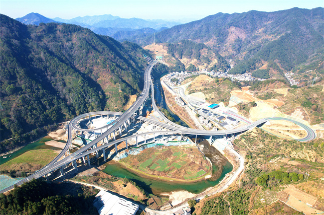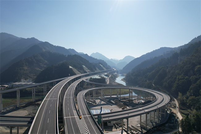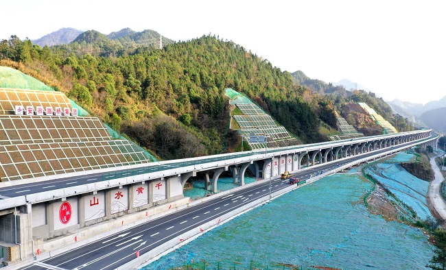 由安徽路桥集团承建的黄千高速02标段,于2020年8月25日开工,桥隧比高达94%,是目前省内高速公路项目中桥隧比最高、施工难度最大的项目。其中,宽翼展花瓶墩工艺为省内于高速公路桥梁建设首次应用;傍山狭窄走廊带,采用装配式悬挑路基结构更为全国首创;方村隧道千岛湖端双线穿越大型岩堆体不良地质,施工难度国内罕见。