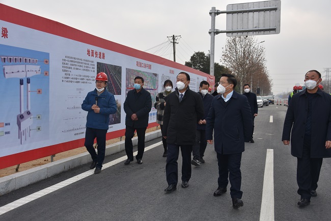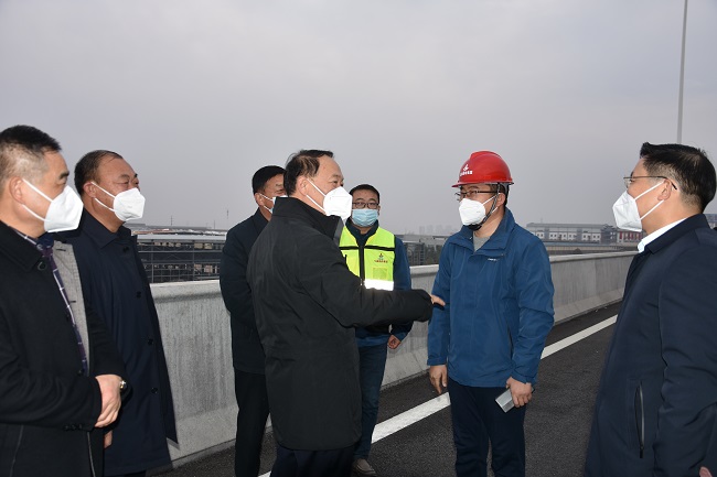 12月31日下午,六安市委书记叶露中莅临安徽路桥集团G312快速化改造工程主线通车现场调研指导。市委秘书长汪宏军、市交通局长朱宏等参加调研。