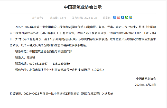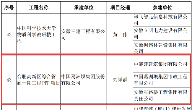 近日,公司参与建设的合肥高新区综合管廊一期工程PPP项目顺利通过国家级最高质量奖项——2022-2023年度中国建设工程鲁班奖(国家优质工程)公示,实现了公司鲁班奖零的突破!