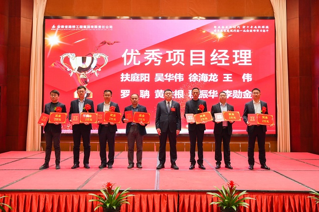 会上表彰了2022年度公司优秀项目经理、先进生产(工作)者、劳动模范、杰出管理奖获得者、杰出员工奖获得者、先进集体;完成了公司2022年劳动竞赛及工程管理考核奖励兑现。签订了2023年党建、经营、安全生产责任书。