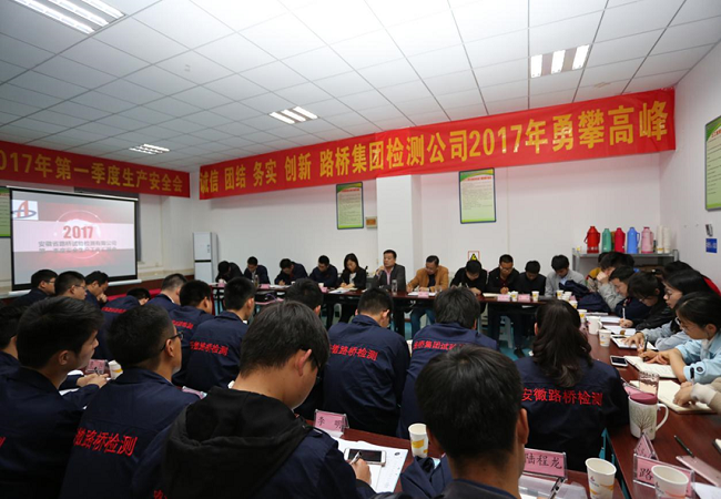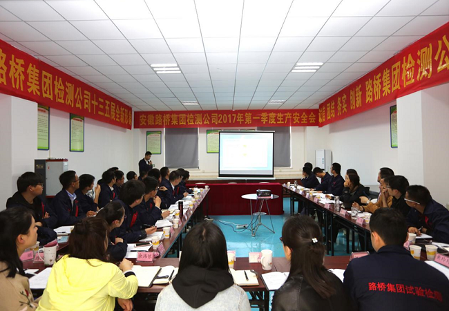 4月8日,检测公司在肥召开2017年试验检测人员内业资料培训暨第一季度生产安全会,会议由检测公司副总经理佐群主持。路桥集团党委委员、总工程师王洁莅临会议并作重要讲话。检测公司领导班子成员、机关各部门、各项目试验室负责人近五十人参加会议。