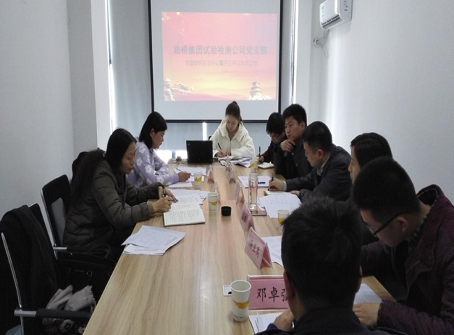 根据路桥集团党委统一安排,2月28日,检测公司党支部召开2017年度专题组织生活会议。会议由检测公司党支部书记、董事长卞宝林主持,路桥集团党委委员、总工程师王洁,党委工作部副主任徐慧玲莅临指导。