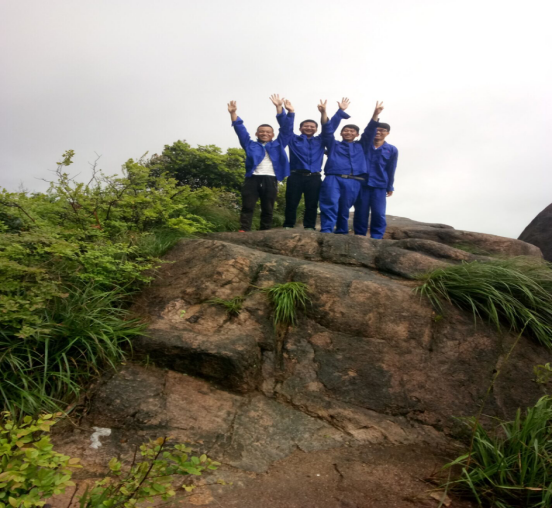 阴雨蒙蒙下山峰更加美丽动人,登山队伍抖擞精神踏上了蜿蜒曲折的上山之路。一路上,不时响起欢声笑语,团队气氛轻松融洽。在一些陡峭难行的路段,大家互相帮助,你托我扶,处处体现了同事间的关爱和友好的团队协作精神。登顶后看见整个青阳的美景,不禁产生自豪感,为自己工作在这片土地而骄傲。