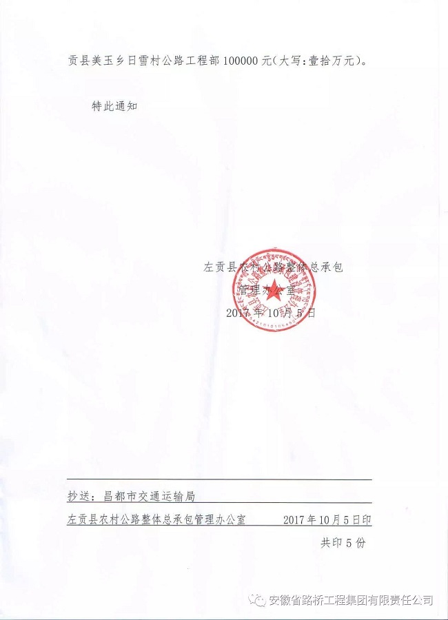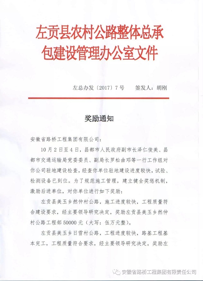 在项目全体员工攻坚克难、精心组织、科学管理下,项目部优质高效地完成了业主单位下达的目标,受到了昌都市人民政府副市长泽仁俊美督导组一行的一致好评,并获业主通报表彰。其中,左贡县美玉乡然仲村公路因施工进度较快,获奖励5万元;左贡县美玉乡日雪村公路,因工程进度较快,路基工程基本完工,获奖励10万元;共计获奖励15万元。这一成绩的取得将为项目部掀起下一轮施工高潮再添动力。