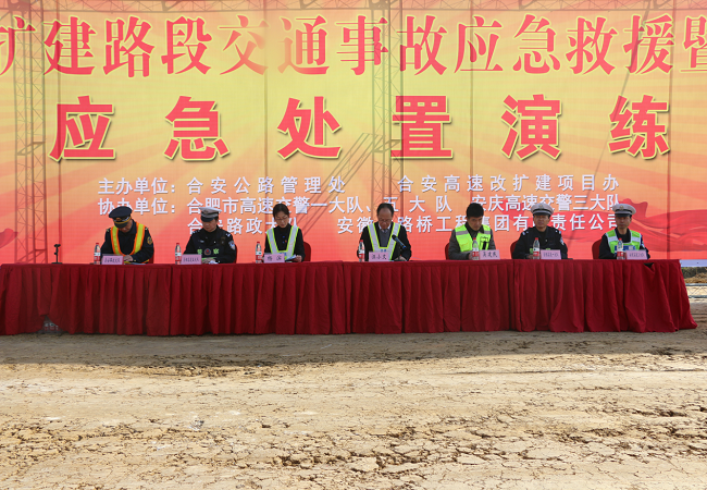 11月23日下午14时,合安高速改扩建路段交通事故应急救援暨铲雪除冰应急处置演练在我公司承建的合安高速改扩建项目01标严店收费站广场顺利举行。参与本次演练的单位有合安高速交警一大队、五大队、安庆高速交警三大队、合安路政大队、合安公路管理处、合安高速改扩建项目办、安徽省路桥工程集团有限责任公司以及合安高速其他参建单位。