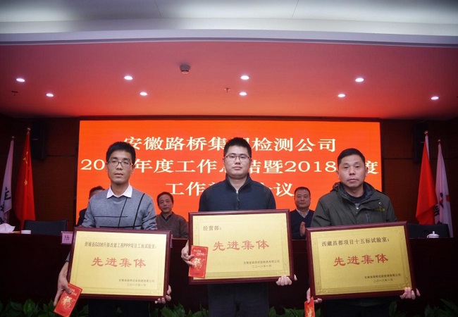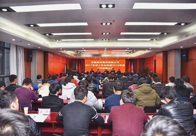 2018年1月7日下午,检测公司2017年度工作总结暨2018年度工作部署会议在安建大厦8楼会议室召开。安徽路桥集团党委委员、总工程师王洁出席了会议。公司领导班子成员、机关各部门、各项目试验室共计九十余人参加了会议,会议由检测公司工会主席、副总经理佐群主持。