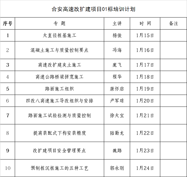 安徽路桥集团合安高速改扩建项目技术培训班于2018年1月15日正式开班。