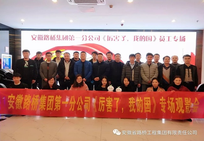 为深入贯彻落实党的十九大精神,进一步弘扬爱国主义教育。3月18日,一分公司党总支、工会组织开展了《厉害了,我的国》观影活动。一分公司总经理李文兵、党总支副书记、工会主席汪永奇及所属各项目党员、员工代表等共30人进行了集体观影。