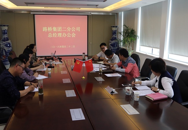 为全面落实2018年度各项工作, 4月22日,二分公司在企融国际16楼会议室召开总经理办公会议,分公司领导班子、机关全体员工及部分项目经理参加会议,会议由党总支委员、总经理张立兵主持。