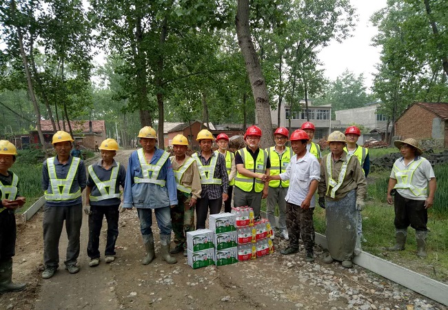 党的十九大提出“建设知识型、技能型、创新型劳动者大军,弘扬劳模精神和工匠精神,营造劳动光荣的社会风尚和精益求精的敬业风气。”在2018年“五一”国际劳动节来临之际,项目部班子成员向节假日期间坚守在灵璧县2018年农村道路工程项目施工一线的工友们表示崇高的敬意和亲切的问候。首先向奋战在一线的工友们送上节日的祝福和矿泉水、饮料、新鲜猪肉等慰问品,随后与工友们亲切交流。项目负责人指出:灵璧县2018年农村道路工程项目工程量大、施工范围广,工期紧,实现项目按期完工任重道远,希望大家精诚合作,在确保质量、安全的前提下,加快施工进度。此次慰问活动宜为劳动竞赛开篇曲,鼓励大家弘扬劳模精神,创先争优,抓进度、保质量,节成本、求效益,卯足干劲,奋发向前,用勤劳的双手为秀美乡村建设贡献自己应有的一份力量。