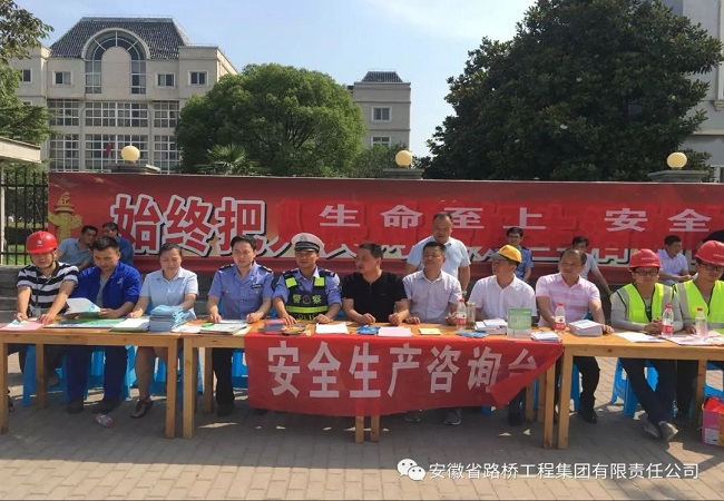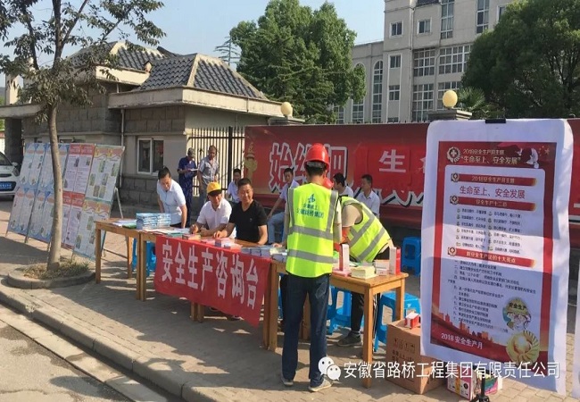 正值第17个全国“安全生产月”,6月15日上午,S215路基01标、路面标项目部联合新杭镇政府、公安消防大队、交警队、食品药品监督管理局、国家电网、宣燃天然气有限公司共同举办2018年“安全生产月”集中宣传咨询日活动。