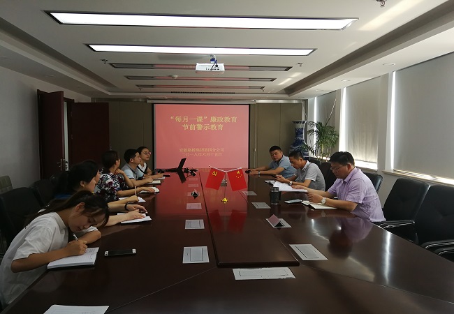 6月15日上午,四分公司机关在企融国际大厦16楼会议室组织召开“每月一课”廉政教育及节前警示教育学习会。会议由党总支书记朱大俊主持,四分公司机关全体员工参加。