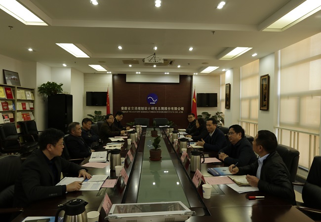 11月23日,公司党委书记、董事长、总经理盛明宏一行前往安徽省交通规划设计研究总院股份有限公司洽谈合作,安徽省交通规划设计研究总院股份有限公司党委副书记、董事长王吉双热情接待了盛董事长一行。