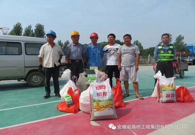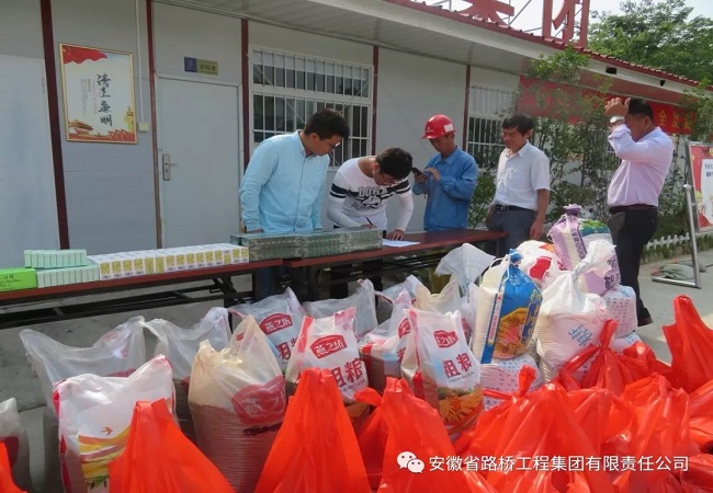 6月18日,端午节当天,合安改扩建项目部开展了“关爱农民工,端午送清凉”活动。项目部给仍坚守在施工一线的农民工精心准备了绿豆、白糖、猪肉等过节物品,以及风油精、人丹、藿香正气水等防暑降温物品。