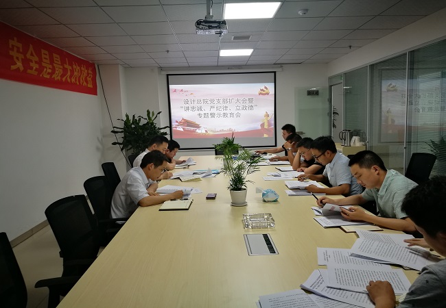 会上首先传达《安徽路桥集团党委关于以鲁炜案徽商集团窝案等案件为反面教材开展“讲忠诚、严纪律、立政德”专题警示教育的安排意见》文件精神,并成立设计总院专题警示教育领导小组,推进警示教育全面贯彻落实。