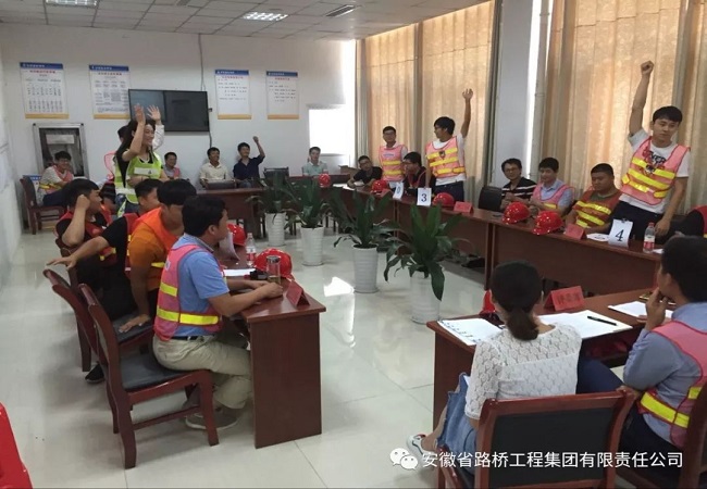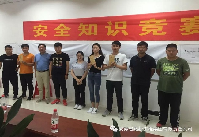 在随后进行的安全知识竞答环节,来自各个项目的6个代表队伍参加竞答。比赛开始前,各队伍表现出舍我其谁的姿态,随后信心满满的开始了答题之旅。随着进入紧张、激烈的抢答题环节,各队伍开始拿出看家本领,你争我夺,你追我赶。经过激烈的角逐,最终蓬莱路项目摘得桂冠,九龙路项目和利辛畅通项目名列第二、第三。