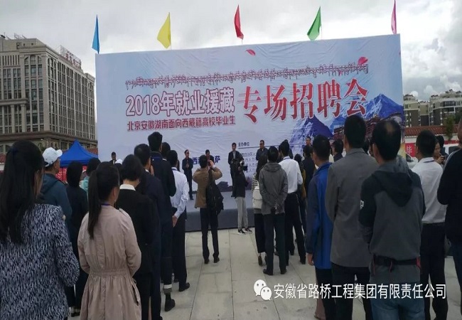 7月28日上午,由西藏自治区人力资源与社会保障厅和安徽省人力资源与社会保障厅主办,西藏自治区就业援藏办、山南市人社局承办的北京、安徽、湖南面向西藏籍高校毕业生2018年就业援藏专场招聘会在拉萨市举行,公司全资子公司西藏新瑞交通建设有限公司参加了此次招聘会。