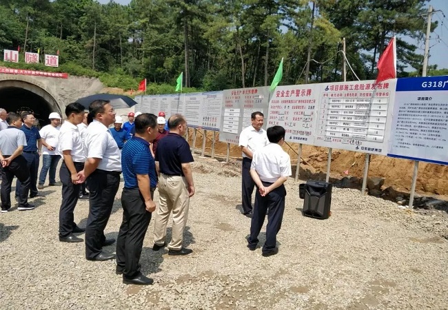视察领导对于隧道施工进度表示满意,县委书记王庆武指出,G318是广德县的重点项目,自2017年以来,县领导班子高度重视工程进展,在土地指标稀缺的大环境下多方协调,落实了项目的征地拆迁工作;G318施工团队自2017年11月进场以来,严格按照进度计划推动工程有序开展,取得了右线贯通的良好成绩。