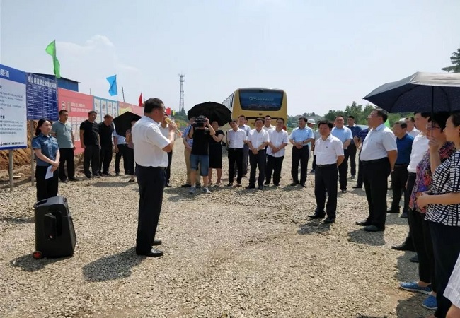 8月6日上午,广德县县委书记王庆武、县长陈红英、县人大主任程利、县政协主席周凤月及县委、县政府、人大、政协等相关领导同志一行70余人,莅临G318广德县绕城段公路改建工程项目,视察横山隧道。项目业主、监理及施工单位相关负责人陪同县领导地参观施工现场,观摩现场安全、施工介绍展板,听取了G318广德绕城路有关介绍与进度情况、工作计划。