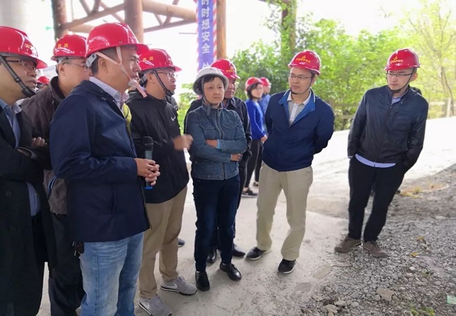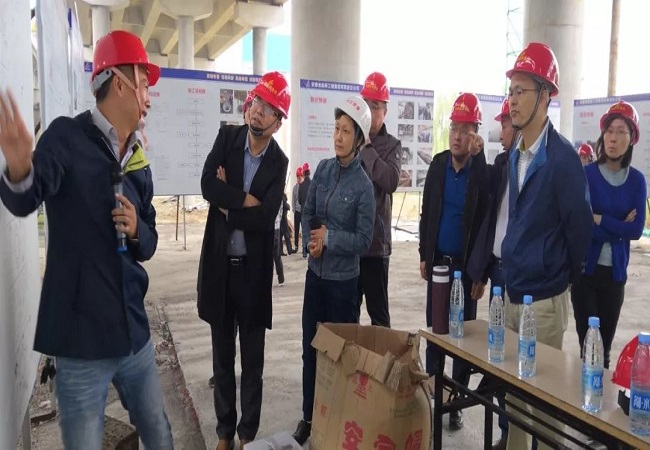 会议结束后,许总在公司党委副书记、总经理欧阳志宜等人的陪同下前往中派河特大桥观摩。参观期间,许总听取了项目负责人关于桥梁预埋件施工控制及现场整体安装方案、工序、工艺的介绍,并就钢结构制作安装期间存在的难点、疑点,以及采取的设计优化内容提出了建设性的意见和建议。她表示,中派河特大桥在设计上大胆创新,技术独特,着实令人印象深刻,值得学习和研究。