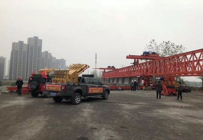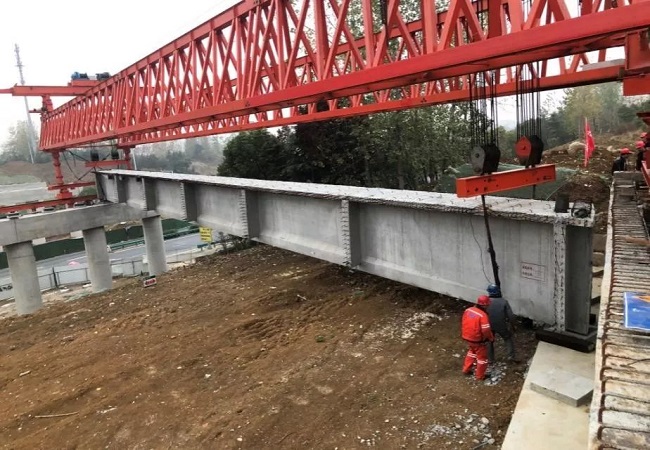 “落、落、落,左移一公分,落、落、落……好!成功了!”。11月21日,在现场负责人利索准确的指挥声中,丙铺路项目玉龙路大桥首片40米T梁平稳、安全、准确地安装在支座上,成功架设。