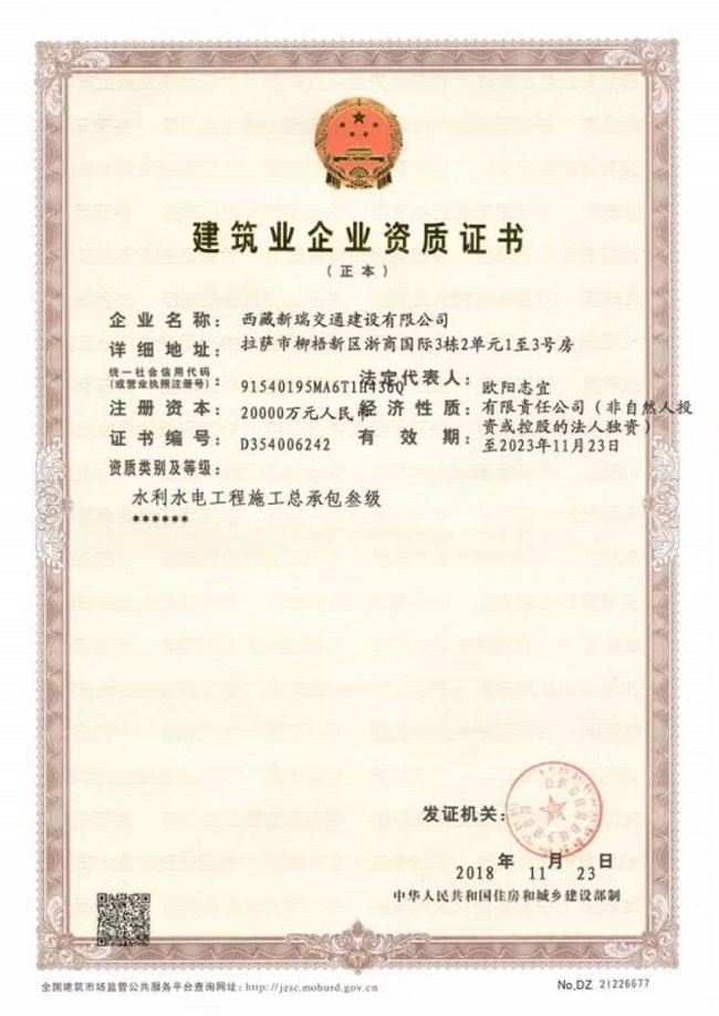 安徽路桥集团全资子公司西藏新瑞交通建设有限公司在去年取得公路、市政双二级资质后,近日,在集团公司的关心支持下,西藏新瑞公司再传捷报,顺利取得水利三级资质!