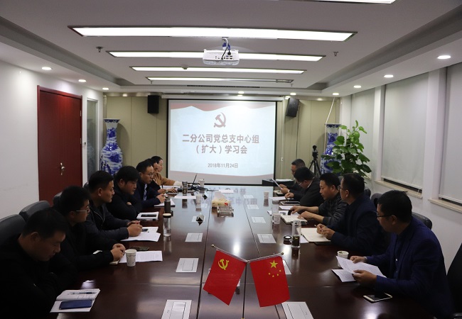 11月24日,二分公司党总支召开中心组(扩大)学习会,集中学习全省宣传思想工作会议和全省组织工作会议精神。党总支书记吕庆广主持会议,各党总支委员、部分项目负责人和机关全体员工参加了会议。