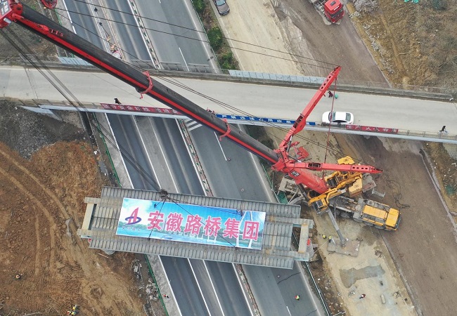 12月21日下午14点,经过紧锣密鼓的筹备,合安改扩建01标龙湾路天桥跨路钢板组合梁成功架设。