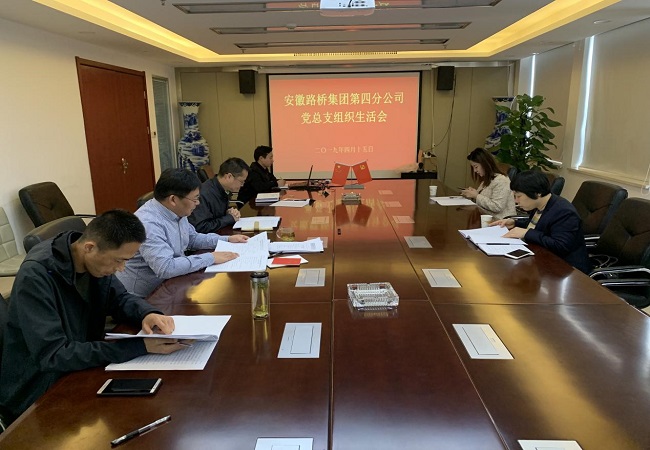 根据公司党委《关于召开2018年度基层党组织组织生活会和开展民主评议党员的通知》(路桥集党发〔2019〕5号)文件精神,4月15日下午,四分公司党总支在企融国际大厦16楼会议室召开了2018年度组织生活会。会议由党总支书记朱大俊主持,四分公司党总支班子参加会议。公司财务总监邓蕾应邀到会指导。