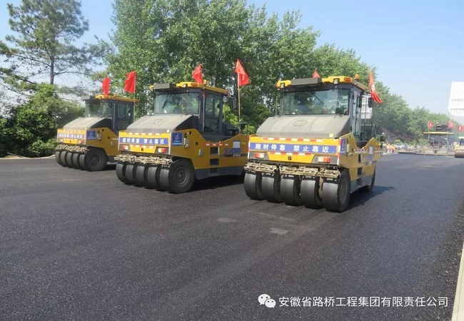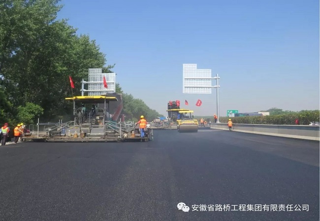 5月23日,芜合高速改扩建三标在K94-K95段进行左幅老路沥青中面层摊铺工作。烈日当空,骄阳四射,施工现场一派紧张有序的场面:一辆辆重型卡车满载沥青混合料排队等候,摊铺机缓慢平稳前行,工人们紧跟摊铺机,平整沥青混合料,压路机来回有序碾压路面。机器的轰鸣声和铁锹叮咚声交相辉映,宛如声势壮阔的合唱。