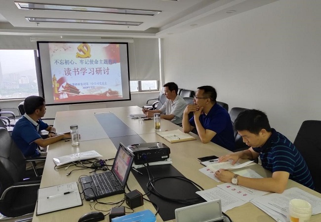 7月9日,三分公司举办“不忘初心、牢记使命”主题教育集中学习研讨会,三分公司党总支委员、党群工作部相关人员参加学习研讨。