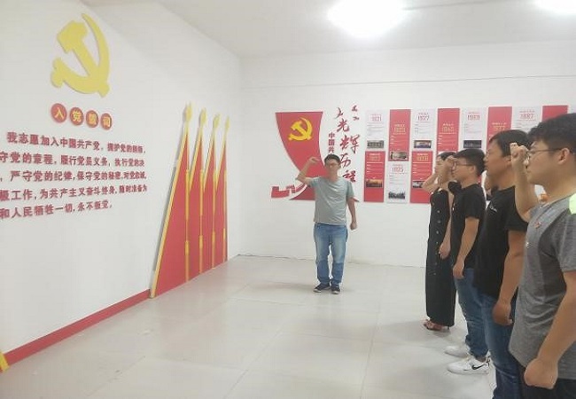 最后,支部书记赵高鹏带领全体党员高举右手,重温入党誓词,坚定不忘初心、继续前进的决心和信念。