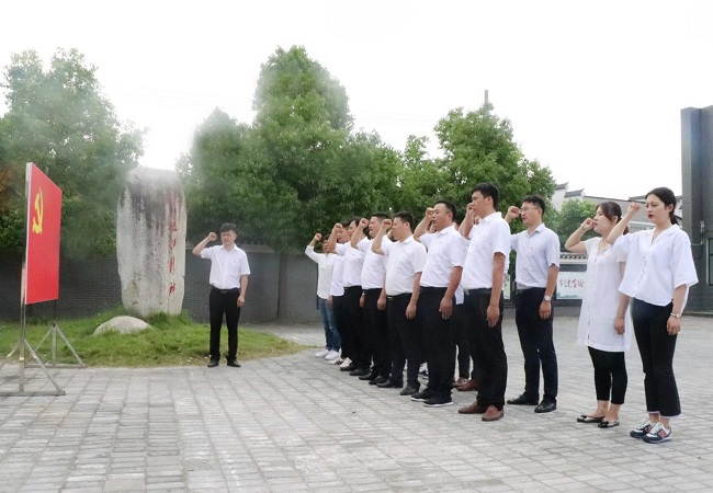随后,在“弘扬渡江精神”石刻前,一分公司党总支书记代杰带领全体党员庄严宣誓,重温入党誓词。面对鲜红的党旗,全体党员紧握右拳,回顾入党时的庄严承诺和坚定决心。