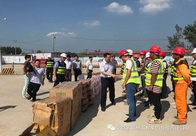 7月25日下午,望江县委书记李跃云携县总工会一行前往G347望江PPP项目,向酷暑中坚守一线的安徽路桥集团员工表示慰问。
