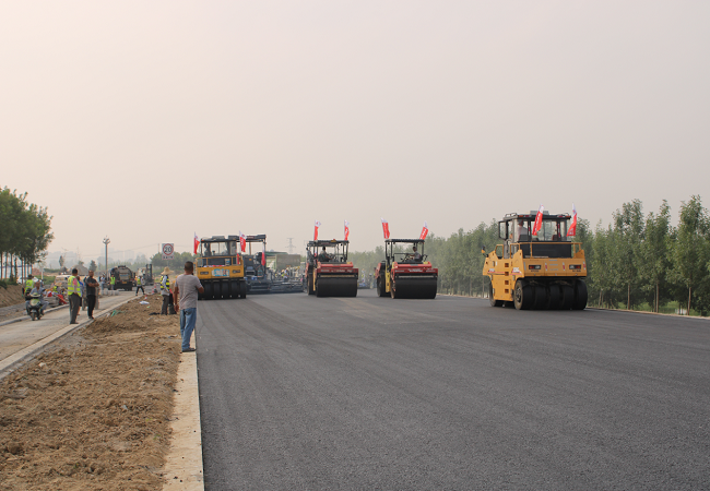 8月20日上午6点,灵璧县城市路网PPP项目滨河路施工现场人头攒动,机械、人员都已准备就绪,而此时由综合场站发出的一辆辆满载着沥青的货车正在缓缓驶来,滨河路沥青摊铺全面展开。