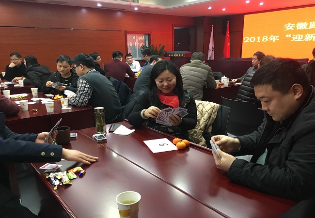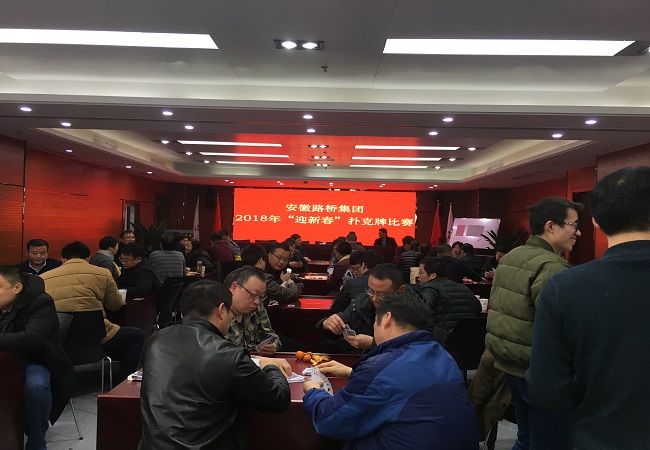 2月10日,利用休息日时间,安徽路桥集团“迎新春”职工扑克牌比赛在安建国际大厦八楼会议室如期举行。在此新春来临之际,本次公司扑克牌比赛不仅包含机关员工,还盛情邀请了公司退休老领导、分子公司扑克牌爱好者,共54人参加比赛。公司领导班子全部参赛,与大家齐聚一堂,同场竞技,共迎新年。