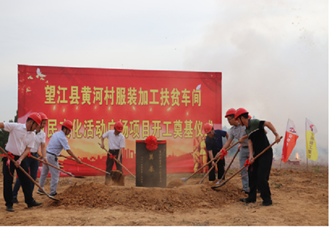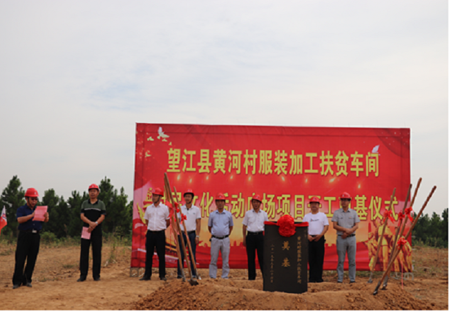 9月26日上午,公司承建的望江县黄河村服装加工扶贫车间及村民文化活动广场项目开工奠基仪式在黄河村举行。望江县人大常委会副主任王进、望江县扶贫办副主任谢晖、高士镇镇长刘正虎、安徽路桥集团二分公司党总支书记、副总经理刘峰等领导出席奠基仪式。
