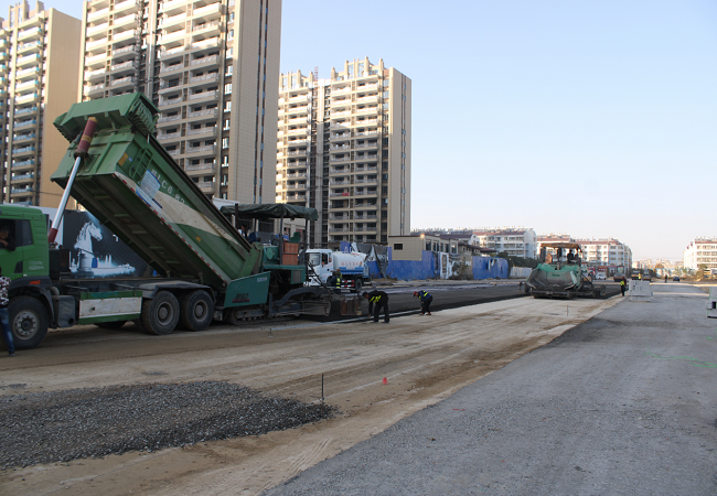 11月14日,磬山南路K2+460-K2+900机动车道水稳摊铺完成。在劳动竞赛领导小组的带领下,项目施工多点开花,各条已开工道路已全面进入大干状态。