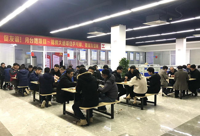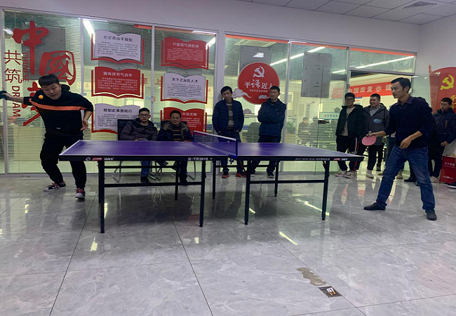 为丰富员工的业余生活,增进项目之间的友谊,1月15日,由一分公司月台路项目与锦绣大道项目联合举办的乒乓球、掼蛋友谊赛在月台路项目部顺利举行,12名乒乓球选手和40名掼蛋选手参加比赛。