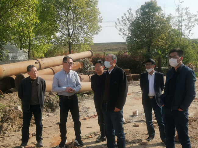 朱新实一行实地察看了杨湾河特大桥及桩基施工进展,并认真听取了当前项目进展情况、现场安全防护措施、质量管理控制举措等工作内容汇报。
