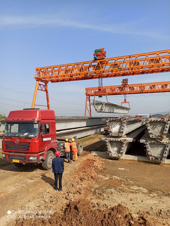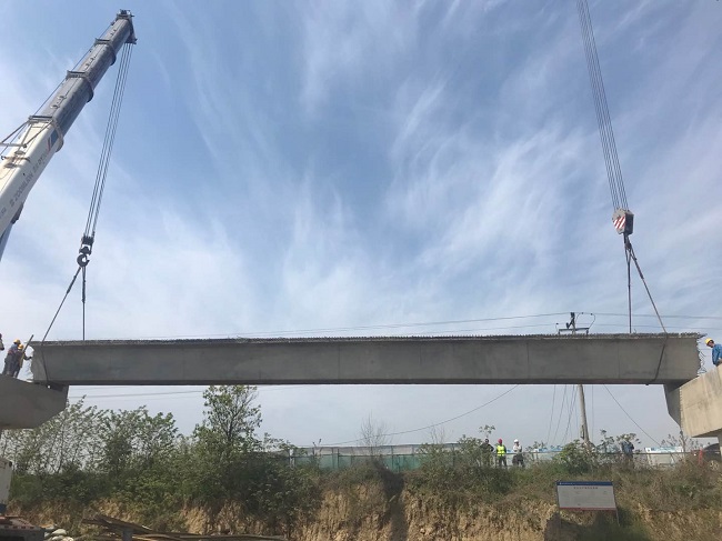 庐江黄陂湖项目的县河大桥现场地形狭隘,施工难度大。为保证涉水施工平稳有序进行,项目部对运梁通道、吊车作业平台、架梁顺序进行了统筹规划,对场地进行换填、碾压、试车,对设备、人员进行了详细的检查和交底。截止4月9日下午17点,县河大桥1-3跨21片箱梁顺利架设完成。目前正在组织9-11跨梁板架设工作。