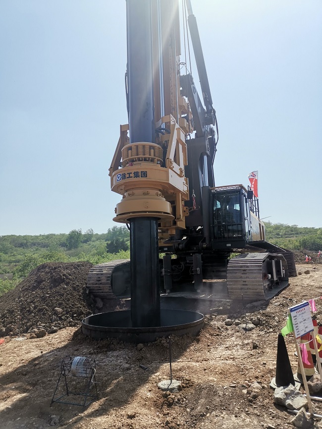 为确保首件桩基的顺利开钻,项目部提前购置了徐工XR550E大型旋挖钻,制定了详细的施工流程和安全质量保证措施,组织技术人员熟悉工程图纸、编制施工方案,并对全体员工进行钻孔桩施工培训及施工技术安全交底。开钻当天,桩基钻孔按施工计划有序推进,直径2.2米桩基入岩后进尺速度保持在1米/小时,符合施工方案。