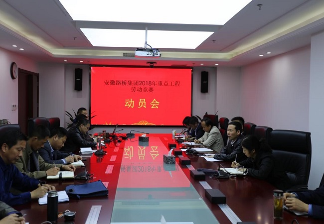 3月27日下午,安徽路桥集团“2018年度重点工程劳动竞赛动员会”在公司九楼会议室召开。公司党委书记、董事长、总经理盛明宏,党委委员、纪委书记、工会主席王胜利,党委委员、总工程师王洁,机关各部门主要负责人以及分子公司党政负责人、工会主席等20余人参加动员会。会议由纪委书记、工会主席王胜利主持。