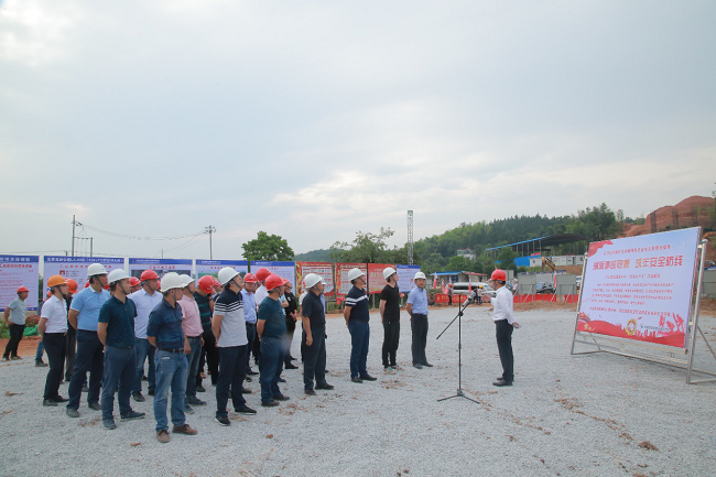 5月28日,芜黄高速项目2020年第二季度安委会暨“安全生产月”启动仪式在公司承建的芜黄03标官田冲大桥高墩柱施工现场举行,建设单位、监理单位及全线13个标段项目负责人、安全管理人员参加。