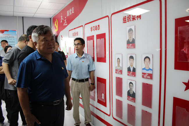 随后,项目负责人详细介绍了项目党建工作以及工程概况,并带领巢湖市交通局机关支部全体党员观摩了项目部新建党员活动室,了解项目党组织建设规范化做法和基层党建工作台账资料,感受项目党建文化的浓厚氛围。