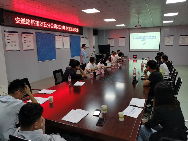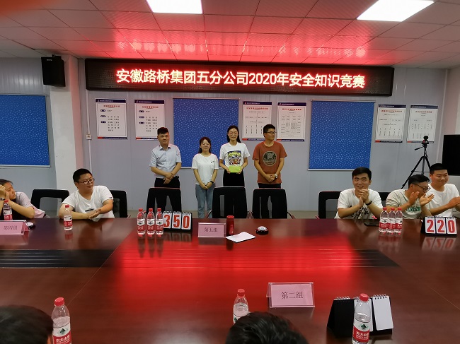 6月20日上午,五分公司2020年“安康杯”安全知识竞赛在六安S244项目部举行,来自五分公司所属项目共六支队伍参加了此次比赛。本次活动旨在贯彻《省国资委“安全生产月”和“安全生产江淮行”活动通知》文件精神,提高分公司员工安全意识和安全素质。